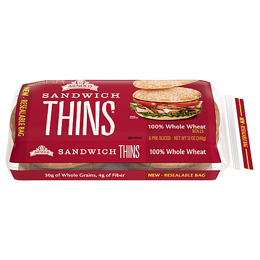 Arnold 100% Whole Wheat Sandwich Thins Rolls are crafted with pride and baked with premium ingredients like olive oil and sea salt, so each bite is now more satisfying and delicious than ever. Free from artificial colors, flavors or high fructose corn syrup, these pre-sliced sandwich rounds deliver nutrition in every bite. The better choice for when you want something delicious without the heaviness of sandwich bread, these nutritious whole wheat rolls are perfectly sized for your favorite sandwich creations. Whether you're making a bacon, egg and cheese breakfast sandwich or a peanut butter and jelly for a quick snack, each sandwich thin is made with great taste and ingredients you love. Arnold Sandwich Thins Rolls are ready right out of the bag for your avocado and tomato sandwich, avocado toast or deli sandwiches. Arnold 100% Whole Wheat Sandwich Thins Rolls have everything you love and nothing you don't. Arnold 100% Whole Wheat Sandwich Thins Rolls offer delicious nutrition for your balanced life from an expert name in bread.