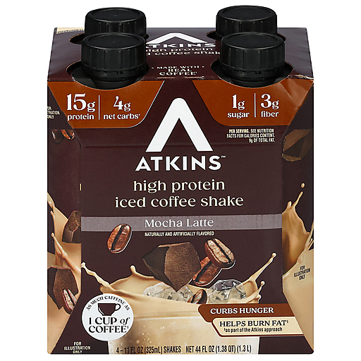 Atkins Iced Coffee Mocha Latte High Protein Shake 4 ea