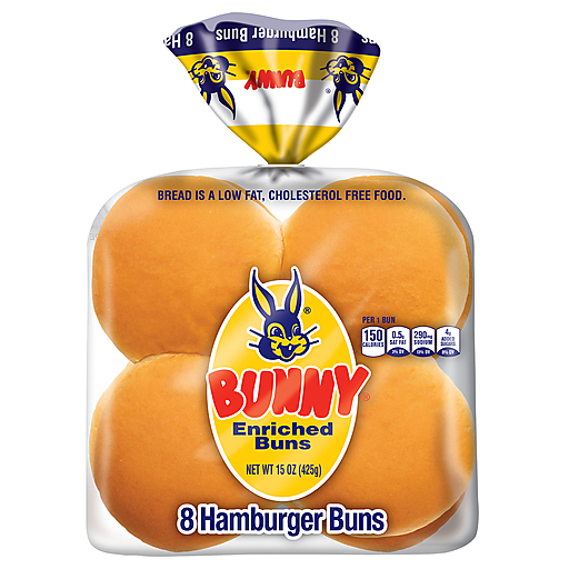 Bunny Bread® Sliced White Bread Hamburger Buns are tasty, classic buns perfect for juicy hamburgers, pulled pork and all your sandwich needs. Each soft, fluffy white bread bun is a cholesterol-free food. Since 1947 Bunny Bread has been a favorite of all ages. Bunny buns are the perfect choice for your next cookout, picnic or camping trip. Bunny Bread Sliced White Bread Hamburger Buns are the buns you can count on to provide you with soft texture and great taste. Bunny Bread was born in Anna, IL in 1947. The original operation involved daily deliveries to nearby homes using Ford Model T trucks and eventually expanded into a major regional bakery. Bunny Bread is synonymous with delicious baked bread and buns. A family brand that's more than incredible baked goods, Bunny Bread is a beloved brand that has been cherished for generations. That's What I Said...Bunny Bread!