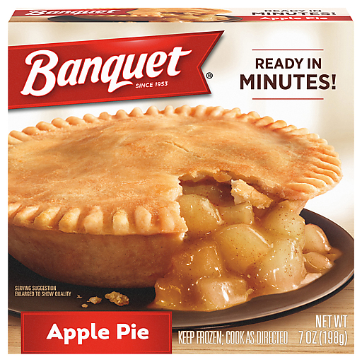 Banquet Apple Pie helps you save time on dessert without skimping on taste. Made with Washington apples, this frozen pie is also made with a tender, flaky crust. Prepare this fruit pie to enjoy a delicious frozen dessert any day of the week. The single serve fruit pies are perfect as an after-dinner dessert, while celebrating an occasion or whenever you’re in the mood for something sweet. Heat the frozen pies in a microwave for a quick and comforting dessert, or prepare in an oven for fresh-baked flavor. Store the 7 oz apple pie in the freezer until ready to prepare and do not thaw. in the U.S.A. for over 60 years, Banquet has been making delicious food the whole family loves.