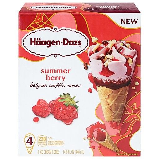 Haagen Dazs Belgian Waffle Summer Berry Ice Cream Cones 4 ea