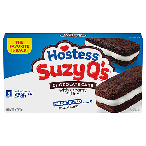 Quick question: Which snack is so big, fluffy and chocolatey that everyone knows her by name? That would be Suzy Q’s! Mega-sized and mega-yummy, Hostess Suzy Q’s snack cakes make every bite of snack time hugely delicious, yet nice and airy. It’s all thanks to the big, soft layers of chocolate cake and the generous helping of sweet, creamy filling sandwiched in between. Each snack cake is also individually wrapped, making them easy to pack in a lunchbox or travel bag — or to enjoy whenever or wherever the situation calls for it. Grab a box to keep these classic cakes queued up for snack time.