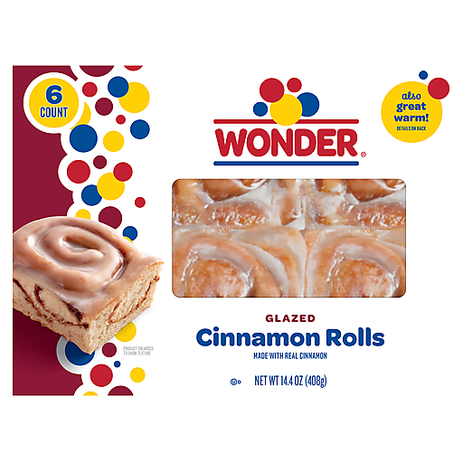Wonder® Cinnamon Rolls are made with real cinnamon, topped with a glazed icing and baked to perfection. These are the pastries made to be enjoyed morning, noon and night. Heat Wonder Cinnamon Rolls in the microwave for a few seconds and pair with your morning coffee for the perfect breakfast food or enjoy a few in the afternoon for a sweet moment . These sweet rolls conveniently come in a box of six for a delicious shareable breakfast for the whole family. These family-approved sweet treats are sure to provide you all the wonder you know and love. Made with Real Wonder. For over 100 years, the makers of Wonder Bread have been baking up that special taste that reminds us of our childhood and proves, time and time again, that the simple pleasures really are the best. Makes you Wonder what sweet memories the next 100 years will bring.